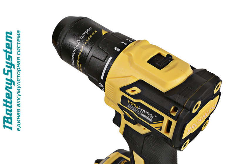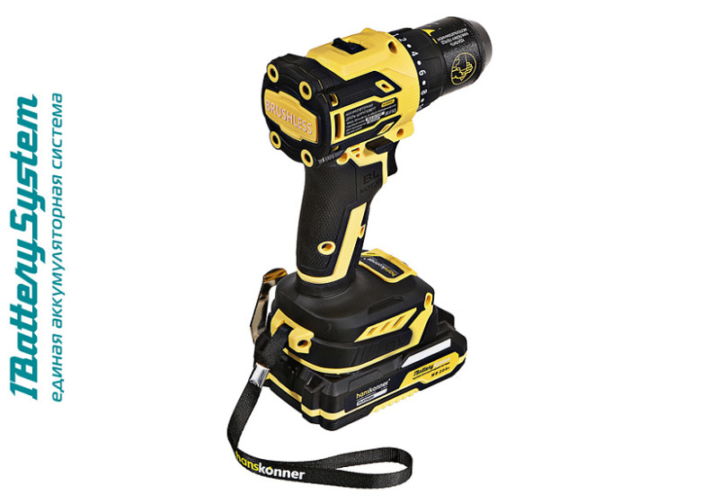 HCD2065C Дрель акк б/щ Hanskonner, 18В, 1BatterySystem,60Нм, пл.патрон, 2х2Ач,кейс