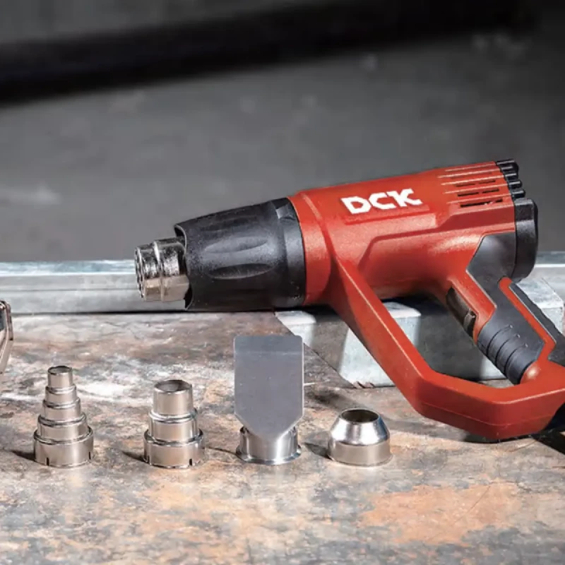 Технический фен Фен DCK KQB04-2000 имеет три режима работы, а таже колесо точной настройки в задней части фена, которая позволяет регулировать темепературу с точностью 10 ℃. Инструмент удобно лежит в руке благодаря прорезиненной ручке. Корпус как и положено сделан из термостойких материалов.