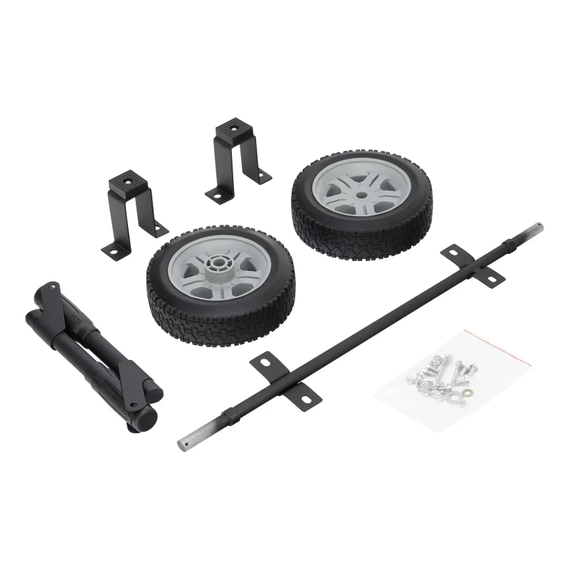 - Комплектация Ручка - 2 штКолесо - 2 штОпора - 2 штОсь - 1 штСкоба крепления оси - 1 штБолт с фланцем М8 - 2 штМалый болт с фланцем М8 - 8 штГайка с фланцем М8 - 10 штШайба - 4 штШплинт - 2 шт