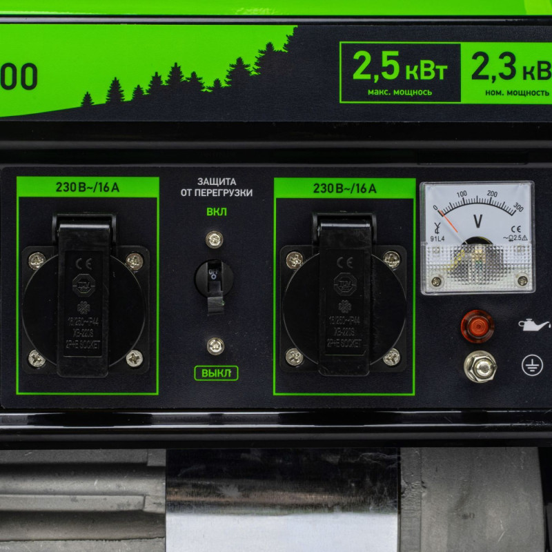 Устройство оснащено вольтметром и индикатором уровня топлива, что позволяет контролировать работу генератора и своевременно пополнять бак.