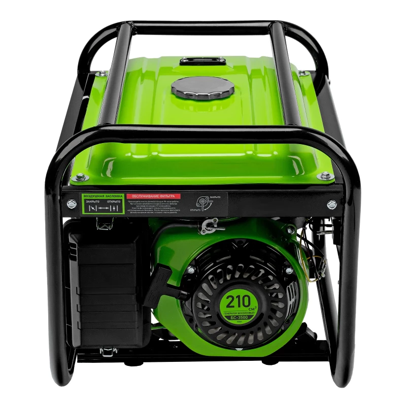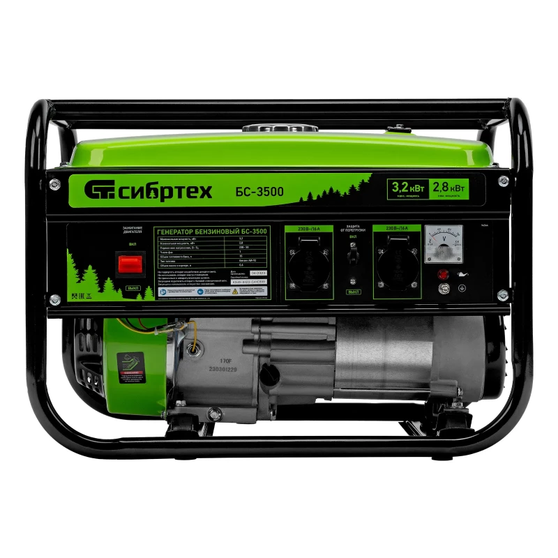 Бензиновый генератор Сибртех БС-3500 94544 на 230 В, максимальной мощностью 3,2 кВт, с 4-тактным двигателем, 15-литровым баком и ручным стартером, предназначен для электроснабжения дачи, кемпинга, небольшого магазина, гаража или строительной площадки. Весит всего 38,8 кг, что облегчает транспортировку, а значит, его можно брать на выездные работы или на природу. Выдаваемого напряжения 3,2 кВт хватает для одновременного подключения 4 ламп накаливания, холодильника, телевизора, электрочайника.