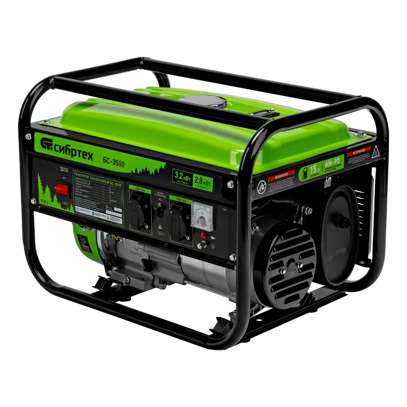 Купить инструмент Генератор бензиновый БС-3500, 3.2 кВт, 230В, четырехтактный, 15 л, ручной стартер Сибртех в Кызыле по цене 14593 рублей. Смотрите другие 82 товаров в разделе Электростанции бензиновые по ценам от 7243 до 363390 рублей. Родительская категория - Силовое оборудование. Производитель - Сибртех.