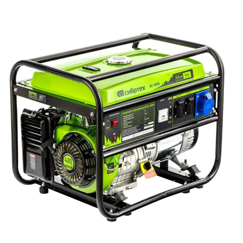 Купить инструмент Генератор бензиновый БС-8000, 6,6 кВт, 230В, четырехтактный, 25 л, ручной стартер Сибртех в Кызыле по цене 47790 рублей. Смотрите другие 82 товаров в разделе Электростанции бензиновые по ценам от 7243 до 363390 рублей. Родительская категория - Силовое оборудование. Производитель - Сибртех.