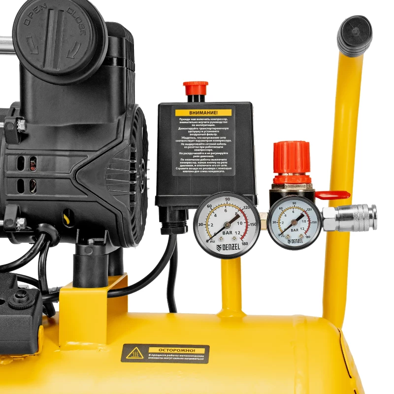 Компрессор безмасл. малошумный DLP-950/24, 950Вт,24 л, 2850 об/мин, 170 л/мин Denzel