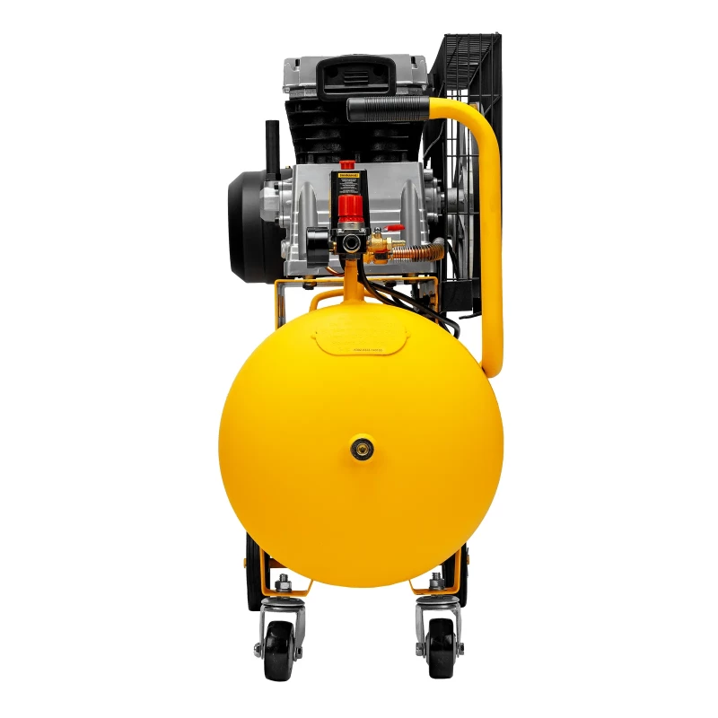 Продуманная система транспортировки с колесами и П-образной ручкой обеспечивает легкость перемещения компрессора в нужное место.