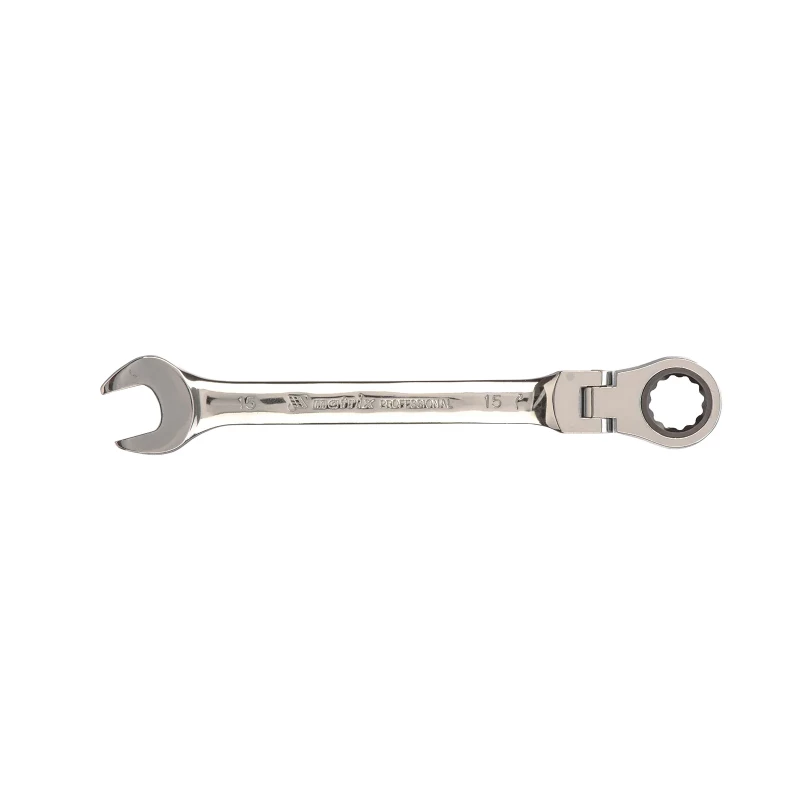 Ключ комбинированный трещоточный, 15 мм, CrV, шарнирный, зеркальный хром Matrix