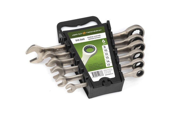 Купить инструмент Набор ключей комбинированных трещоточных 6 шт., холдер в Кызыле по цене 2166 рублей. Смотрите другие 391 товаров в разделе Ключи комбинированные по ценам от 47 до 17112 рублей. Родительская категория - Слесарный инструмент. Производитель - Дело Техники.