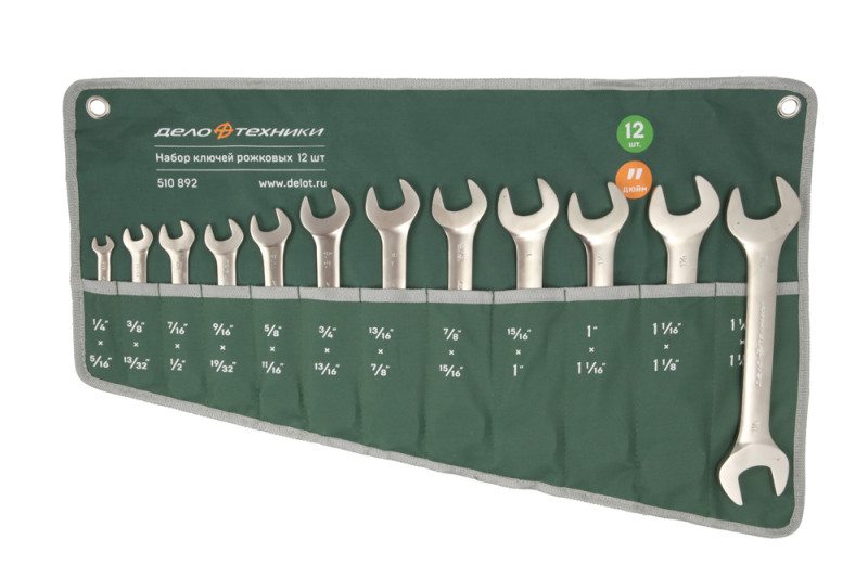Набор ключей рожковых дюймовых, 12 шт., планшет тетрон.