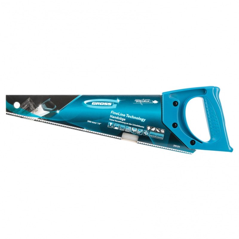 Ножовка для работы с ламинатом "Piranha", 360 мм, 15-16 TPI, зуб 2D, каленый зуб, пласт.рук-ка Gross