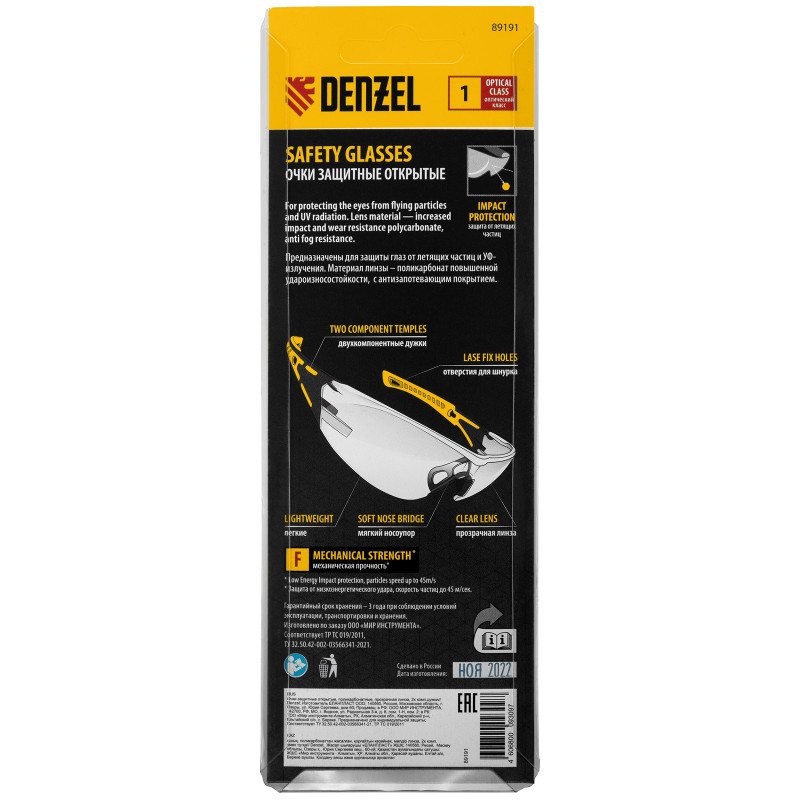 Очки защитные открытые, поликарбонатные, прозрачная линза, 2х комп.дужки Denzel