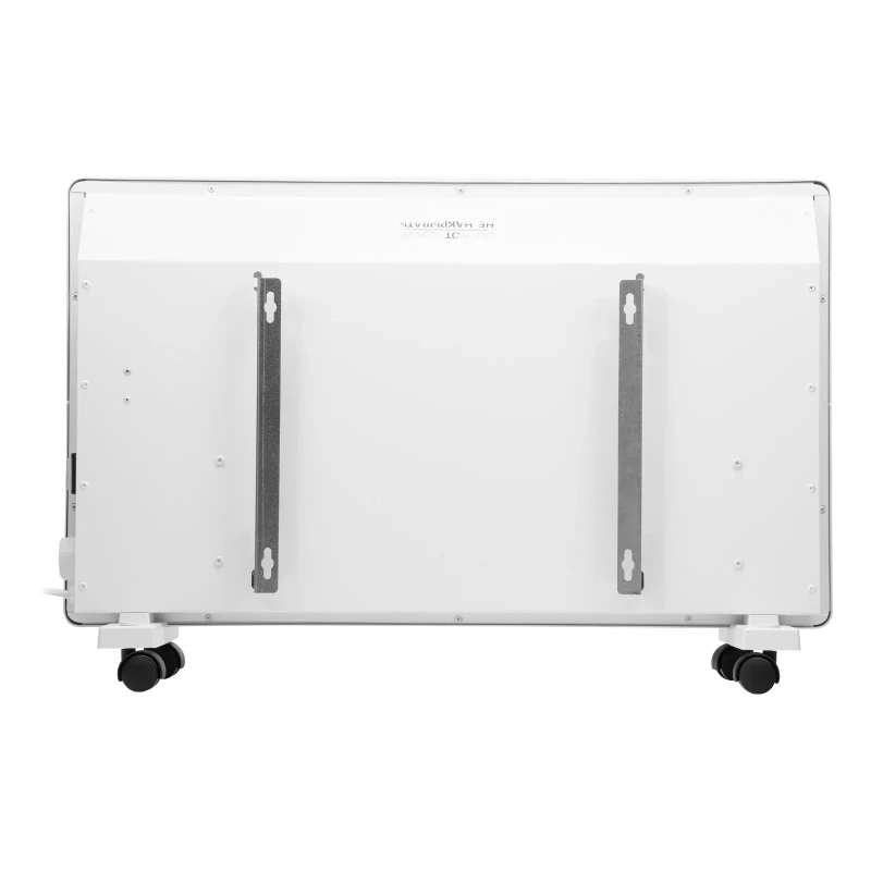 - Два варианта монтажа — конвектор можно расположить на полу или повесить на стену (колесные пары и кронштейн входят в комплект поставки).